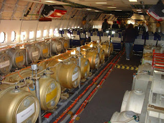 Leggiamo infine sulle "False prove": "Diverse fotografie, che mostrano serbatoi installati all'interno della carlinga di un aeromobile civile, vengono portate come prova a sostegno dell'esistenza dei sistemi di dispersione aerea degli aerosol chimici. Si tratta, in realtà, di installazioni idrauliche atte a simulare il peso dei passeggeri, o di un carico pesante, allo scopo di testare la stabilità di un aereo mentre è in volo: i serbatoi sono riempiti di acqua, la quale viene pompata da un contenitore all'altro in modo da spostare il centro di gravità del velivolo.[43][44]" (Id.)